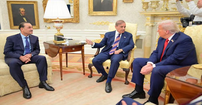 উত্তরবঙ্গ সংবাদ ডিজিটাল ডেস্ক: বৃহস্পতিবার হোয়াইট হাউসের ওভাল অফিসে পাকিস্তানের প্রধানমন্ত্রী শেহবাজ শরিফ (Shehbaz Sharif) এবং সেনাপ্রধান আসিম মুনিরের (Asim Munir) সঙ্গে বৈঠক করেছেন মার্কিন প্রেসিডেন্ট ডোনাল্ড ট্রাম্প (Donald Trump)। বৈঠকের আগে সাংবাদিকদের সঙ্গে কথা বলার সময় ট্রাম্প উভয় অতিথিকে “মহান নেতা” হিসেবে অভিহিত করেন। তবে এদিনের বৈঠকে ঠিক কী বিষয়ে কথা হয়েছে, সেই বিষয়ে স্পষ্ট কিছু জানা যায়নি।