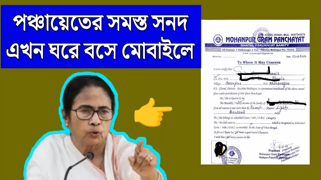 WB Panchayet Certificate Online: রাজ্য সরকারের ডিজিটালাইজেশনের প্রয়াসে সাধারণ নাগরিকরা এখন ঘরে বসেই বিভিন্ন সরকারি পরিষেবা পেতে চলেছেন শুধু হাতে মোবাইল থাকলেই যথেষ্ট।হেক সেটি ইনকাম কিংবা বাসিন্দা অথবা প্রধান সুপারিশ সবকিছুই ঘরে বসে। সেই প্রেক্ষিতে ২০২৫ সালে “Panchayat Certificate Online” প্রকল্প চালু করেছে রাজ্য সরকার, যার মাধ্যমে আপনি সহজেই ইনকাম সার্টিফিকেট, রেসিডেন্স সার্টিফিকেট, কাস্ট সার্টিফিকেট সহ একাধিক গুরুত্বপূর্ণ ডকুমেন্ট অনলাইনে আবেদন করতে পারবেন।