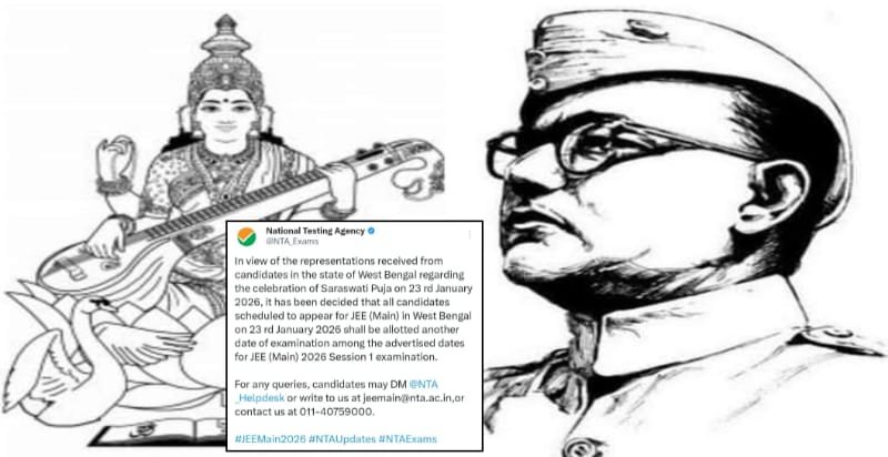 অবশেষে বিজ্ঞপ্তি জারি করল এনটিএ, বিজ্ঞপ্তিতে জানিয়েছে সরস্বতী পূজা ও নেতাজি সুভাষচন্দ্র বসুর জন্মদিনের কারণে ২৩ জানুয়ারি ২০২৬-এ হওয়া JEE(Main) সেশন-১ পরীক্ষা এখন নতুন তারিখে নেওয়া হবে। পরীক্ষার্থীদের কোন রকমে সমস্যায় পড়তে না হয় ইতিমধ্যে এনটিএ হেল্প ডেস্ক চালু করেছেন।