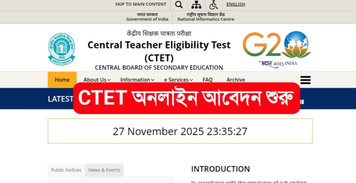শুরু হয়েছে চলতি বছরের সিবিএসই (CBSE) সিটেট (CTET) পরীক্ষার রেজিস্ট্রেশন। এবং আগামী ১৮ ডিসেম্বর পর্যন্ত রেজিস্ট্রেশন চলবে।