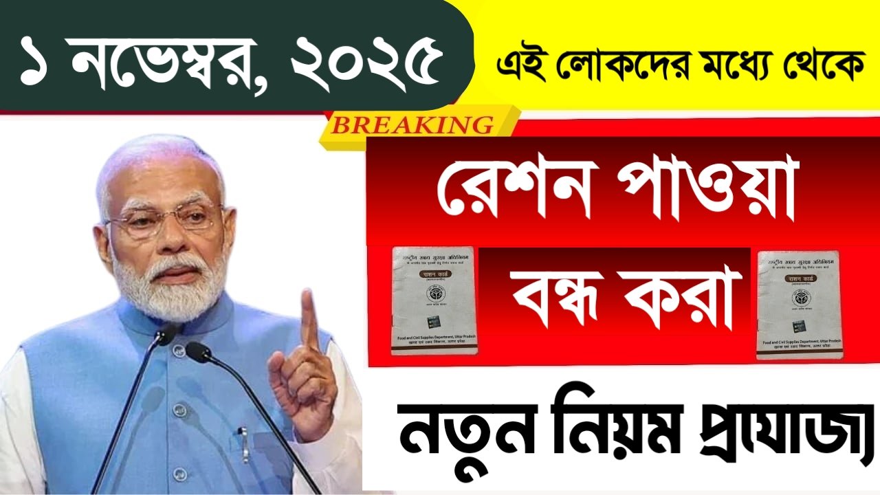 এবার কেন্দ্রীয় সরকার ফ্রি রেশন নিউ রুলস ২০২৫-এ বড় ধরনের পরিবর্তন ঘোষণা করেছে, যা কোটি কোটি রেশন কার্ডহোল্ডারদের ওপর প্রভাব ফেলবে। নতুন নিয়মটি সারা দেশে 1 নভেম্বর, 2025 থেকে কার্যকর হবে এবং কিছু লোকের রেশন সুবিধা বন্ধ হতে পারে।