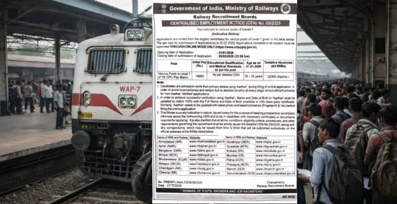 RRB Group D Recruitment 2026: চাকরি প্রার্থীদের জন্য সুখবর। ভারতীয় রেলের তরফ থেকে ২২,০০০ শূন্যপদে গ্রুপ ডি পদে কর্মী নিয়োগের সংক্ষিপ্ত বিজ্ঞপ্তি প্রকাশ করা হয়েছে। যেখানে ভারত তথা পশ্চিমবঙ্গের সকল যোগ্য ও ইচ্ছুক প্রার্থীরা আবেদন জানাতে পারবেন। সবকিছু ঠিকঠাক থাকলে নতুন বছরেই হতে চলেছে গ্রুপ ডি (RRB Group D Recruitment 2026) পরীক্ষার ফর্ম ফিলাপ বলে আশা করা যাচ্ছে।
