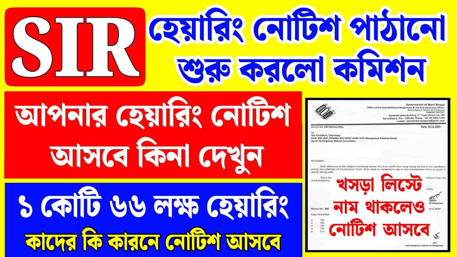 ১৬ ই ডিসেম্বর SIR এর খসড়া ভোটার লিস্ট প্রকাশিত হয়েছে ।‌ এবার নির্বাচন কমিশন ভোটারদের বাড়ি বাড়ি হেয়ারিং নোটিশ (SIR Hearing Notice) পাঠানো শুরু করে দিয়েছে ।