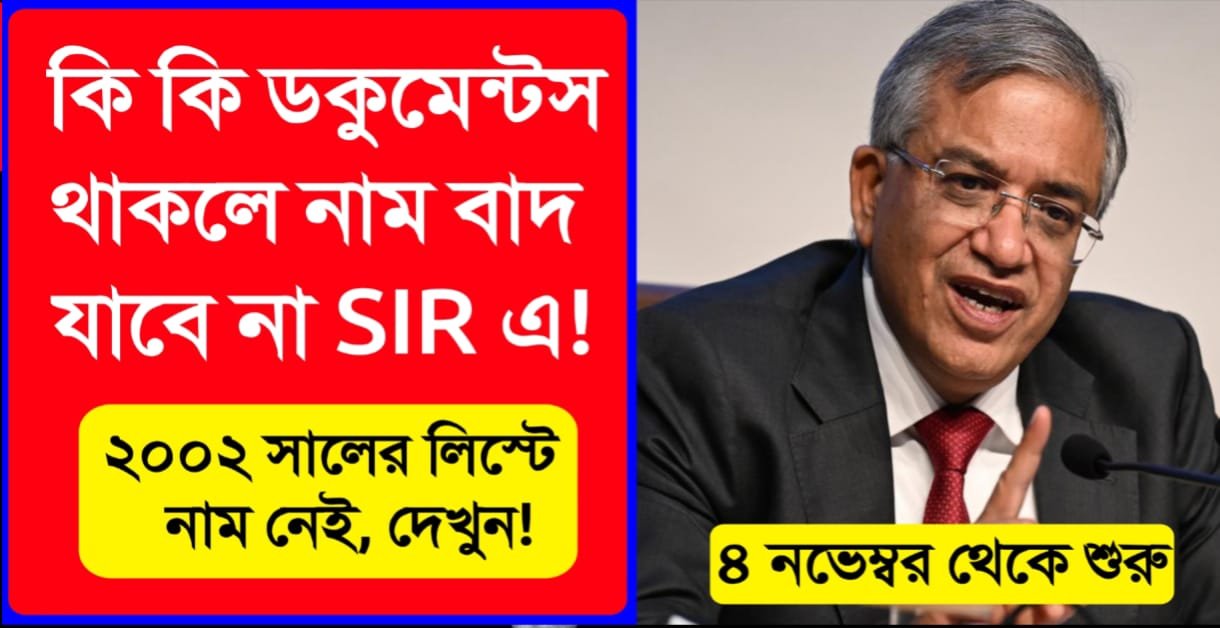 ভোটার SIR এ কি কি ডকুমেন্টস বৈধ, কি কি ডকুমেন্টস SIR ফর্মে জমা করা যাবে, দেখুন লিস্ট –