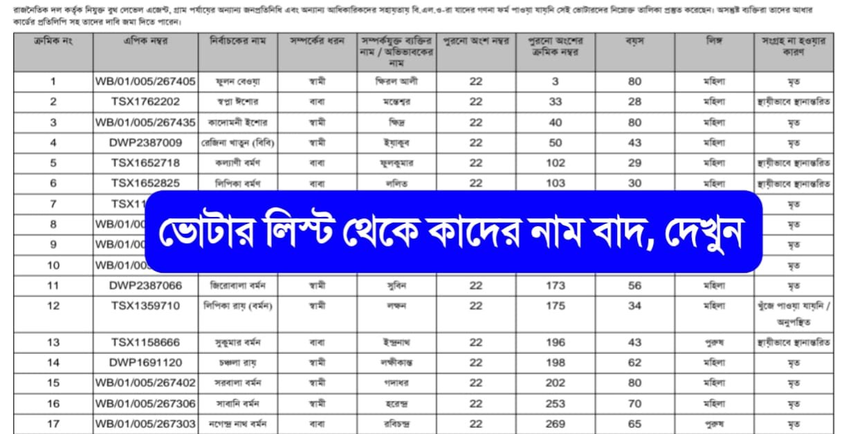 খসড়া ভোটার তালিকা থেকে কাদের নাম বাদ গেলো জেলা ও বিধানসভা ও ভোট কেন্দ্র ভিত্তিক লিস্ট PDF ডাউনলোড করুন –